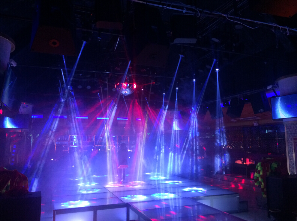 本次项目配备灯具有24台摇头光束灯,24台LED小金刚,44台LED帕灯,以及大功率激光灯,频闪灯,蜘蛛灯,蝴蝶灯,观众灯,特效设备等等,经过调试和试营业之后,场地灯光设备达到预期效果。